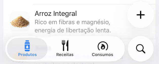 A navegação do Nutriora é feita através de quatro separadores principais, sempre acessíveis na parte inferior do ecrã.