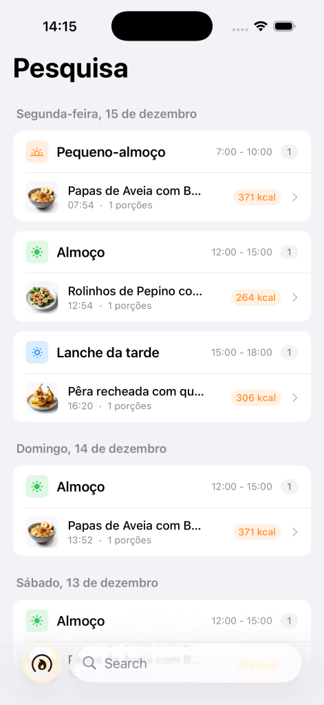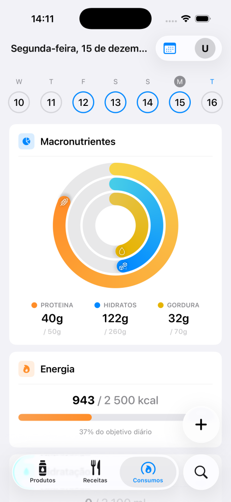 Depois de concluíres o onboarding, podes começar imediatamente a usar o Nutriora: