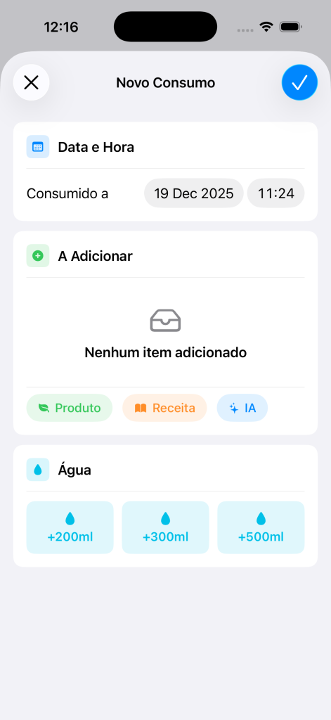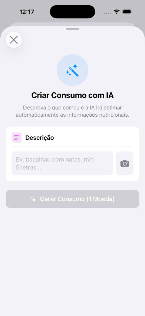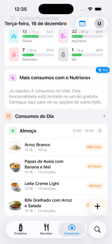 • O registo de consumos por IA pode consumir moedas, caso não seja subscritor Nutriora Pro