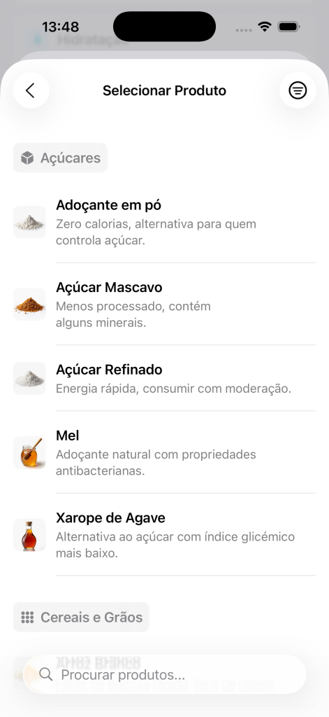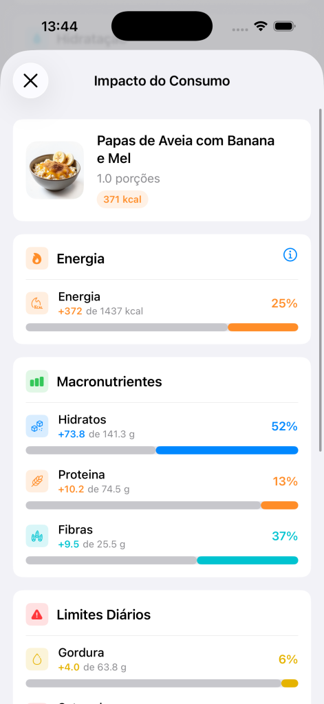 • Estimativas inteligentes: Baseadas em dados nutricionais de referência
