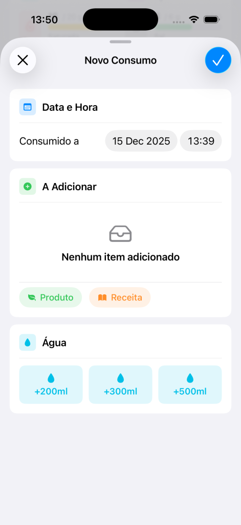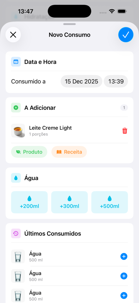 O consumo passa a fazer parte do seu diário alimentar como qualquer outro registo.