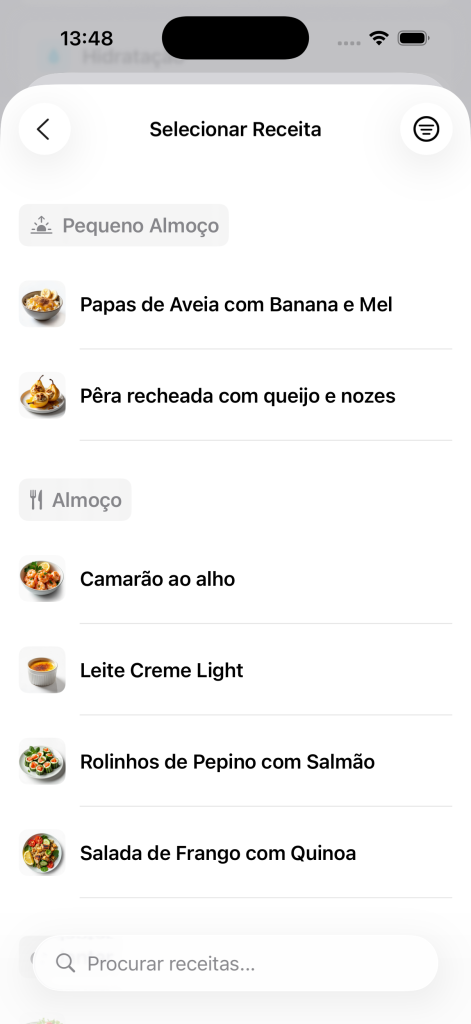 2. Escolhe a refeição (pequeno-almoço, almoço, jantar ou lanche)