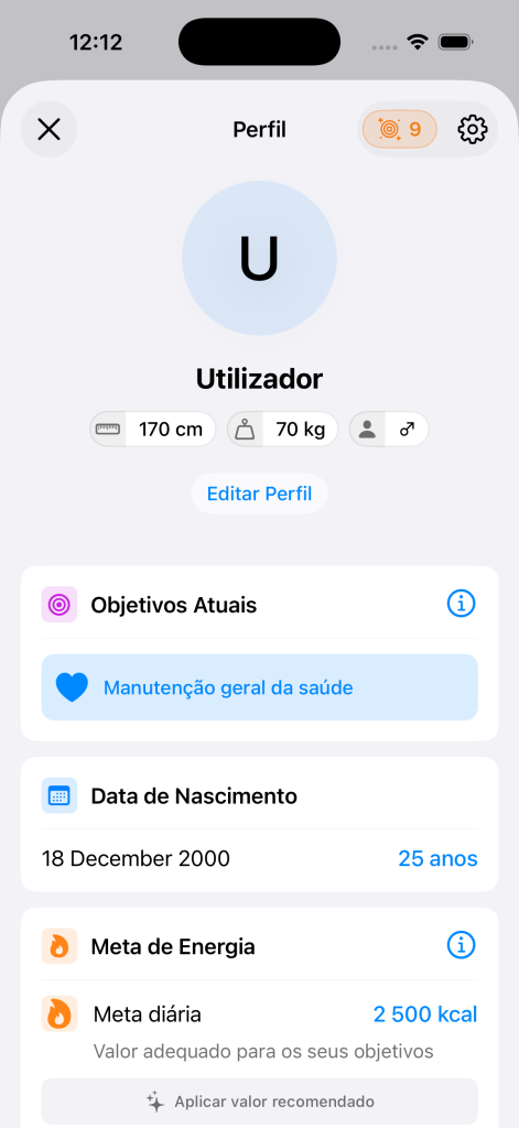 Se utilizares o Nutriora em vários iPhones ou iPads, o saldo mantém-se atualizado em todos